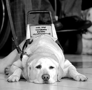 Una joven menuda, de apariencia frágil y acompañada por un perro guía, que al entrar se detuvo un momento en el recibidor acortando la cuerda que la unía a su lazarillo, avanzaba con paso seguro, como si caminara por un lugar ya transitado, en dirección a la ventanilla de atención al público.